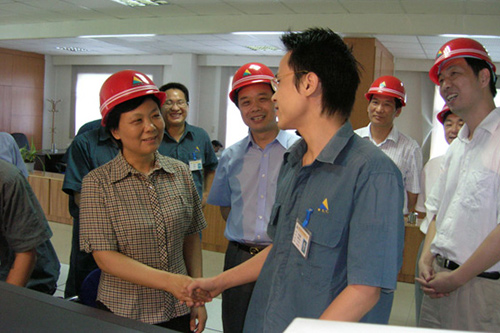 乔传秀同志调研公司党建工作时,与岗位员工亲切交谈