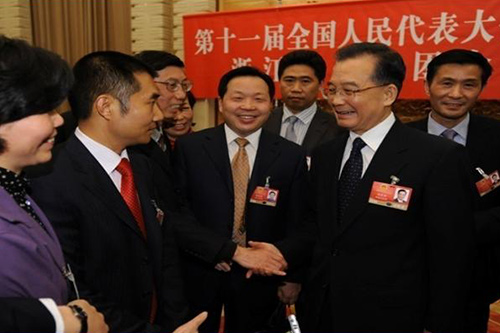 国务院总理温家宝十一届全国人大二次会议期间与张剑星等代表亲切交谈